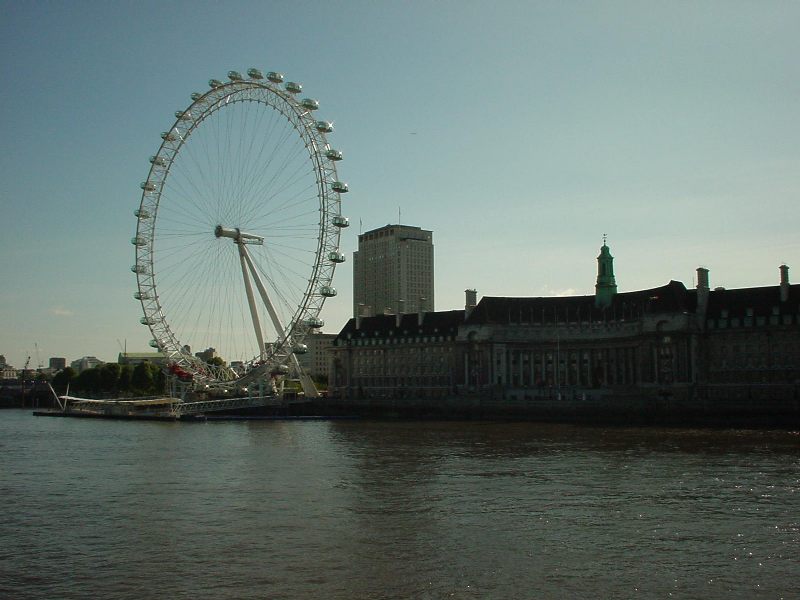 Das London Eye gegenüber den Houses of Parliament